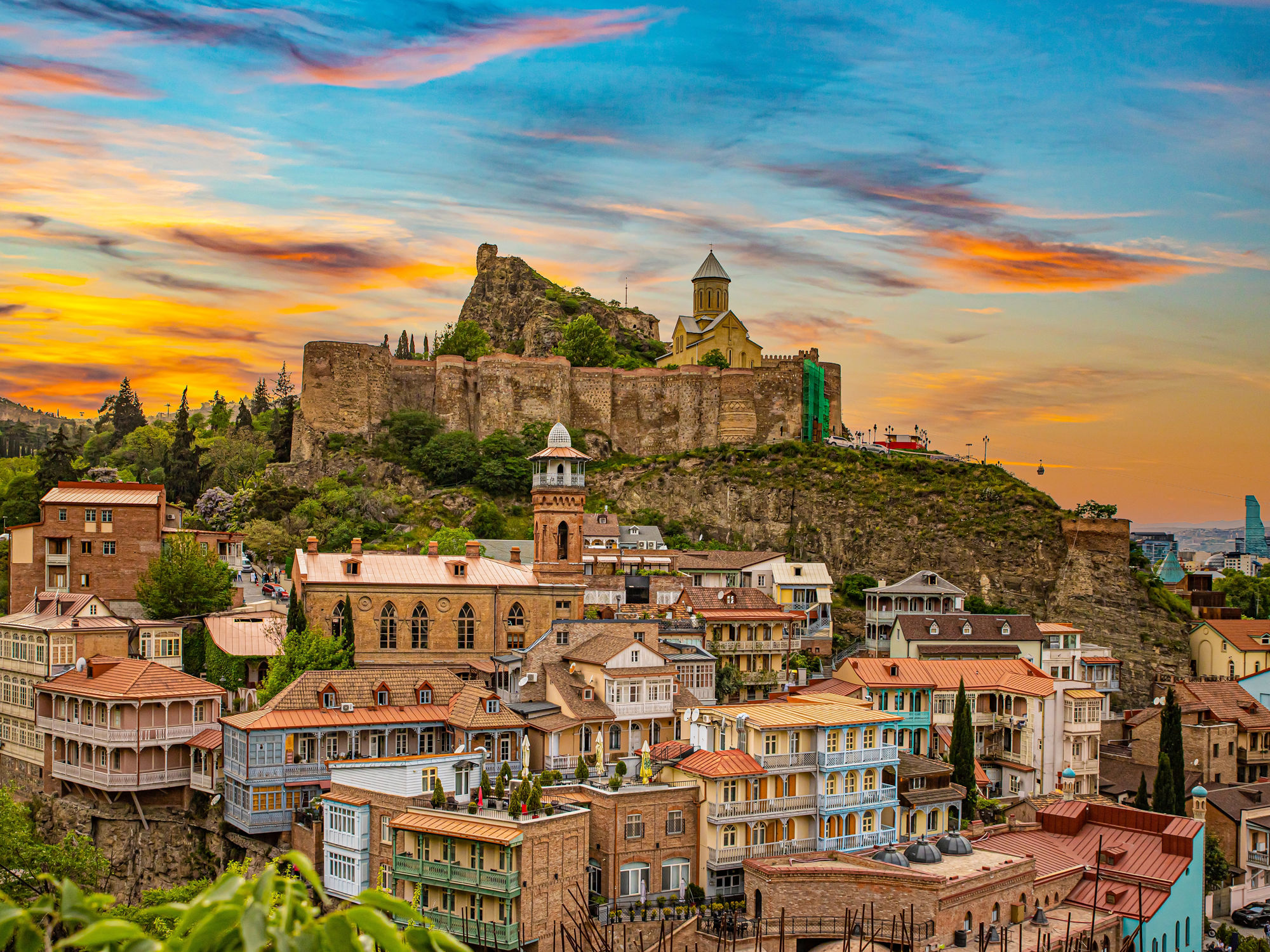 Old Town (Dzveli Tbilisi): Wooden balconies, narrow alleyways, sulfur bathhouses.